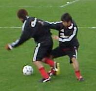 まずは、練習風景 1対1でプレスとかチェックの練習をしてました。 村田さんの相手は、岡田くん。 すっかり足のほうも治ったのかなぁ。