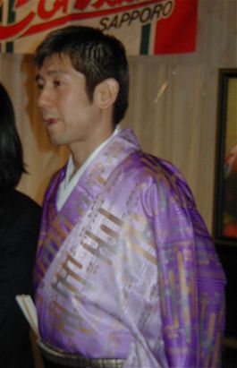 さて、壮行会の入場が始まってから、会が始まる前まで、村田さんは着流し姿でウェルカムをしました。