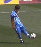 試合前のアップに出てきて、ボールを蹴っている村田さんの様子です。